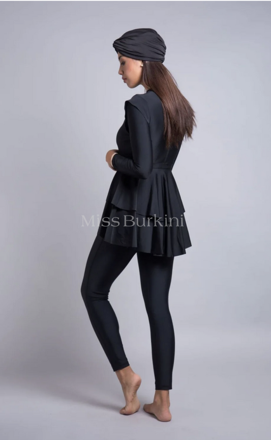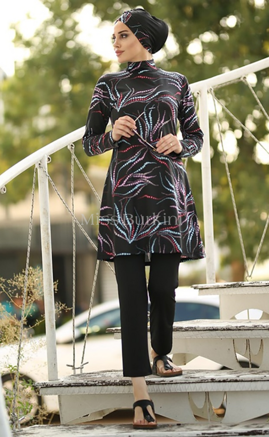 Elegante traje de baño islámico burkini negro de 3 piezas